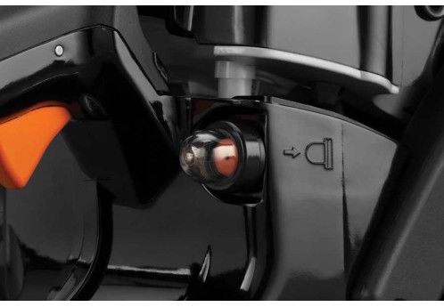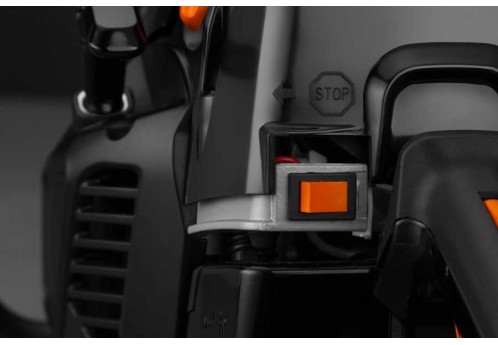 Выключатель двигателя автоматически возвращается во включенное положение после каждой остановки двигателя. Это предотвращает возможный перелив топлива и исключает лишнее движение оператора при запуске бензопилы, повышая удобство при работе.