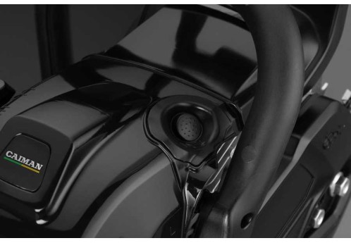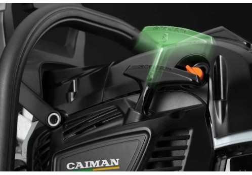 В отличие от обычных бензопил с рабочим объемом до 60 см³ модели CAIMAN Chenso оснащены декомпрессионным клапаном для легкого запуска. При старте двигателя клапан выпускает часть сжатой топливной смеси из цилиндра. Вследствие этого заметно снижается требуемое усилие на шнуре стартера во время запуска бензопилы.