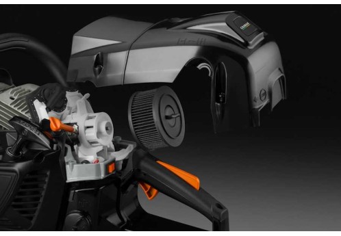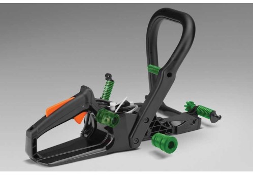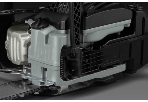 Система виброизоляции состоит из 3 пружинных и 3 резиновых амортизаторов. За счет этого существенно снижается уровень вибрации на передней и задней рукоятках и составляет менее 6 м/с². Благодаря этому достигается оптимальное управление бензопилой во время работы и снижается утомляемость оператора. Также низкий уровень вибрации уменьшает нагрузку на карбюратор, продлевая срок его службы.