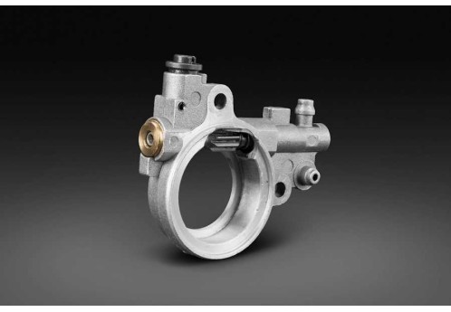 На бензопилах CAIMAN Chenso установлен масляный насос в металлическом корпусе. Интенсивность подачи масла можно отрегулировать при помощи отвертки. При работе двигателя на холостом ходу подача масла исключается.