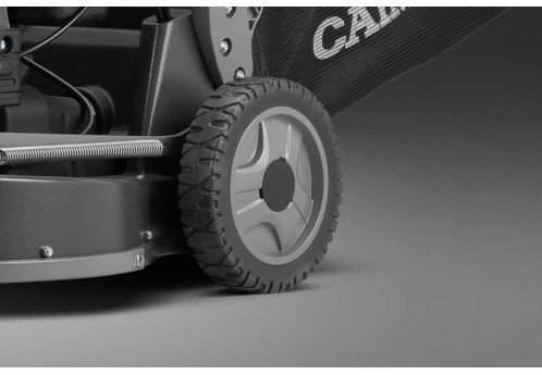 Привод на задние колеса газонокосилки осуществляется посредством полноценной 3-скоростной карданной передачи Shaft Drive. Корпус выполнен из высококачественного алюминия, а все внутренние приводные компоненты изготовлены из закаленной стали. Карданная передача имеет минимальные потери мощности, не требует чистки от травы и периодической замены ремня как традиционные передачи. Подобная конструкция снижает время простоя и повышает производительность. Она облегчает работу оператора на газоне, склонах или неровных участках. Ресурс механической коробки передач на порядок выше, чем у стандартного редуктора CAIMAN. Рычаги управления скоростью движения удобно расположены на рукоятке газонокосилки.