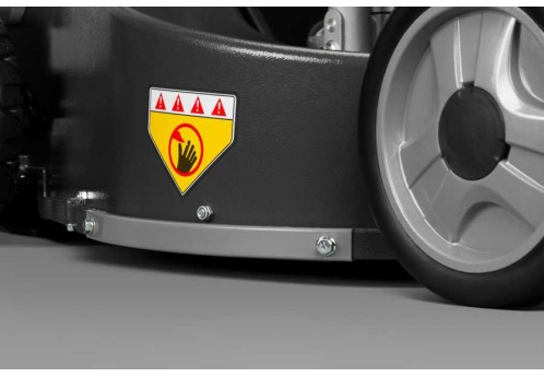 Рукоятка соединена с корпусом газонокосилки с помощью мощного стального кронштейна. Такая конструкция позволяет выдерживать серьезные длительные нагрузки. Удобный хват рукоятей позволяет с легкостью управлять машиной даже на неровном рельефе. Зубчатые пары выполнены из металла для большей прочности и износостойкости. Благодаря автоматической защелке нет необходимости использовать гайки.