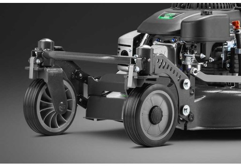 Высота кошения регулируется в диапазоне от 20 до 85 мм, что позволяет косить как низкий газон, так и уже подросшую траву. Однорычажный механизм центральной регулировки высоты кошения поддерживается усиленной пружиной. Рычаг размещен внутри заднего колеса, что обеспечивает ему дополнительную защиту при работе вдоль стен или живых изгородей.