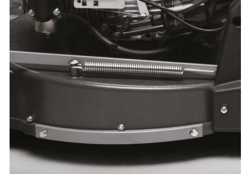 Корпус косильной деки выполнен из высококачественного алюминия с ударопрочным молотковым покрытием для длительного срока службы и повышенной стойкости к внешним воздействиям. Специальная форма позволила увеличить объем воздушного потока на 40% для превосходного сбора травы в любых условиях кошения. Стальная защита внешней и внутренней части деки может заменяться по мере необходимости. Она предотвращает повреждение камнями и другими предметами, защищает внешнюю часть при кошении вблизи стен или других объектов.