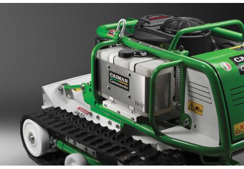 CAIMAN Commando оснащен двухцилиндровым V-образным японским двигателем Kawasaki FS481V (Япония) с рабочим объемом 603 см3. Мотор обеспечивает энергией электрический привод деки и трансмиссию траков. Двойной воздушный фильтр лучше задерживает мелкие частицы от попадания в карбюратор и увеличивает срок службы двигателя до 20%. За счет масляного насоса, который обеспечивает принудительную подачу масла в пáры трения, и специальной конструкции картера двигателя, достигается предельно допустимый угол наклона двигателя для постоянной работы – 45°.