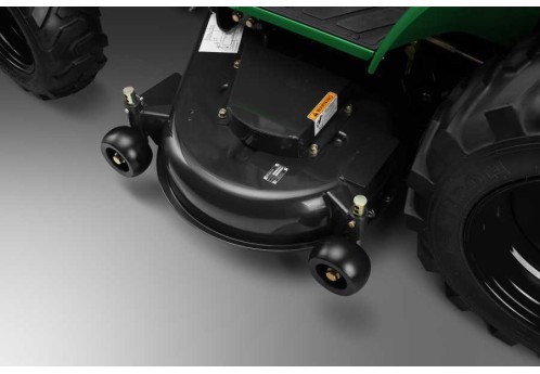 Усиленная режущая дека с боковым выбросом и большой шириной кошения располагается между осями, что позволило сместить центр тяжести ближе к середине машины. Это улучшило устойчивость при работе на территориях со сложным ландшафтом и большими перепадами по высоте. Приводные узлы и крепления деки просты в обслуживании и имеют высокий запас прочности для интенсивной коммерческой эксплуатации.