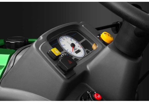 Конструкторы CAIMAN Dako уделили особое внимание комфорту оператора. На информационной аналоговой панели находится вся необходимая информация: счетчики моточасов и оборотов двигателя, индикатор включенной деки и уровня топлива.