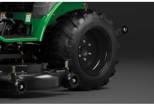 Два режима скоростей позволяют выбирать наиболее оптимальный вариант в зависимости от сложности территории. Так, пониженная передача используется при кошении высокой травы и при передвижении по склонам, повышенная – при работе на больших площадях. Подключение полного привода позволяет устранить эффект проскальзывания, который может появиться при частом маневрировании, и гарантирует постоянное сцепление всех четырех колес с поверхностью, повышая безопасность оператора на склонах и рельефной местности. В особо сложных условиях можно заблокировать задний дифференциал, чтобы обеспечить одинаковый привод на задние колеса и улучшить управляемость машины.