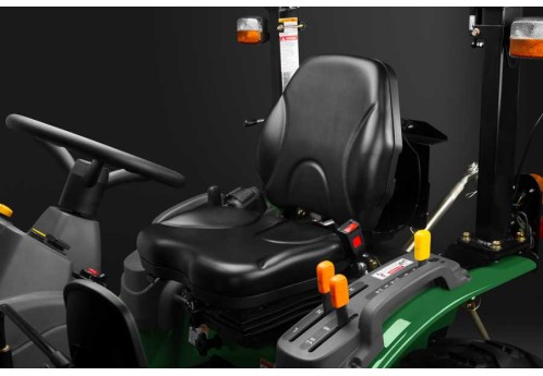 Удобное сиденье оператора оснащено высокой спинкой и ремнями безопасности для защиты оператора при помощи рамы ROPS. Кресло регулируется в положении вперед/назад и позволяет работать длительное время без усталости.