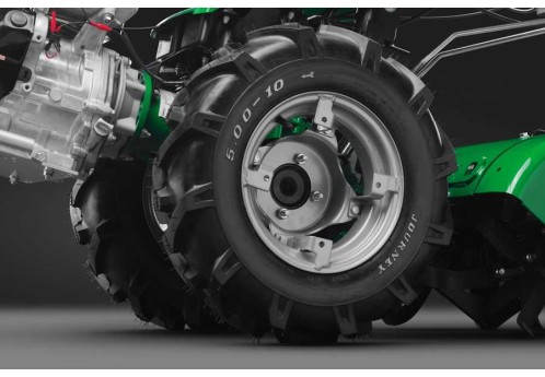 Большие пневматические колеса с сельскохозяйственным протектором обеспечивает высокий уровень сцепления на грунте и проходимость, возможность эффективно работать любым навесным оборудованием.