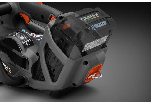 Пила подключается к аккумуляторам системы STANDARD CONNECT. Однако, вы можете использовать ранцевые батареи высокой емкости системы MAXI CONNECT, подсоединяемые при помощи специального адаптера. Производительность цепной пилы при использовании батареи STANDARD CONNECT B6040 емкостью 4 Ач составляет 100 резов древесины диаметром 15 см.