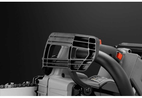 Безопасность оператора обеспечивается при помощи инерционного тормоза, способного моментально остановить вращение цепи в случае отскока пилы назад.
