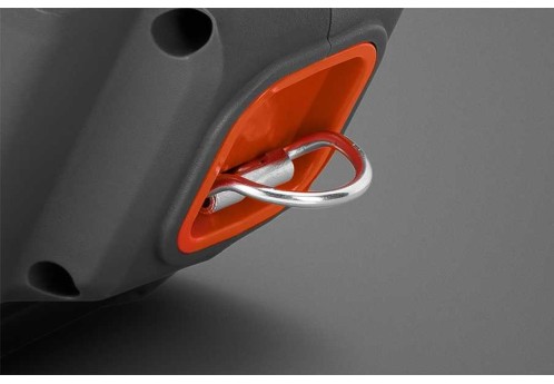 В случае необходимости работы на большой высоте, например, при обрезке деревьев с платформы автовышки, специальная петля на корпусе пилы позволяет закрепить страховочный трос или шнур, чтобы не допустить падения инструмента на землю.
