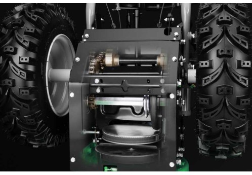 Снегоуборщик оснащен трансмиссией Disc-o-Matic с фрикционным диском. Переключение передач и изменение скорости движения происходит за счет перемещения фрикционного колеса относительно диска. Чем дальше от центра и ближе к краю диска расположено фрикционное колесо, тем выше скорость снегоуборщика.